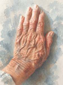 I am sharing a poem I wrote at one of the times I had an urge to write but not a “topic.” I began to look at my hands. In the background of this looking was most likely that my son, who had died in a snowboarding accident years before and who I thought about daily, of course, was left-handed. And my mother was in her late 80s and also left-handed. And I felt the callous on my left hand where my ring had rubbed for years against an adjacent finger. I can tell you this now as I reread the poem. At the time of writing, I was merely suddenly fascinated with my left hand and how I would describe it. Hence, the title—since I am right-handed examining my left hand was a novelty.