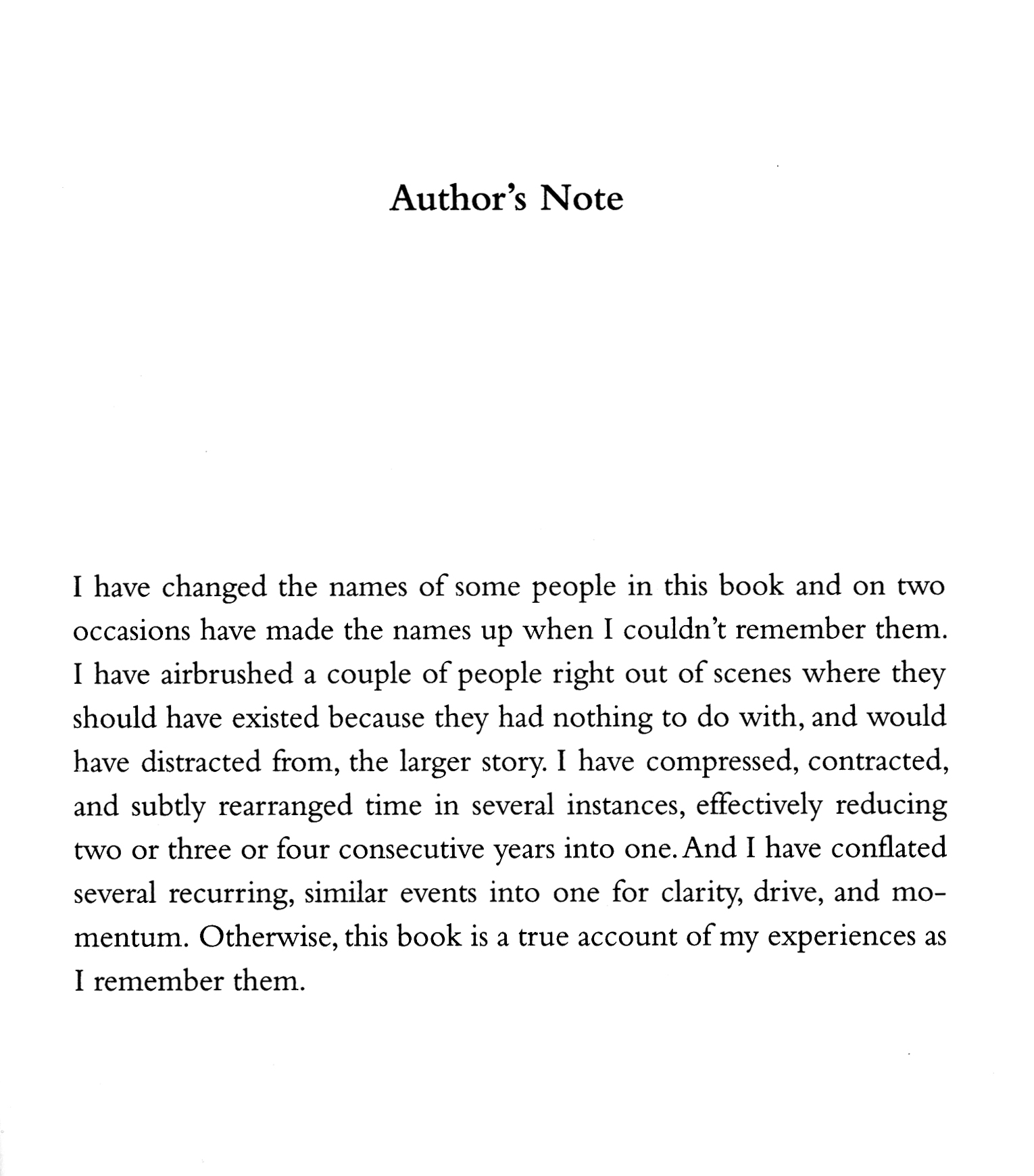 Of interest to memoirists, especially those who’ve been fluttering about Greg Mortenson’s “Three Cups of Debacle” these last few days, is the Author’s Note that follows the final chapter.