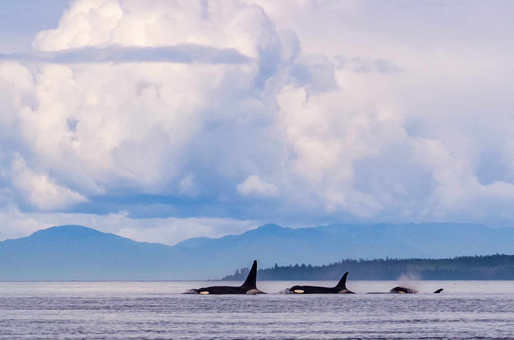There’s a couple other things I’d learned about orcas from her: first, that it is illegal for any boat to approach the whales, but not illegal for a whale to approach a boat. And second, that the whales have a tendency to surface to breathe three times before diving deep.