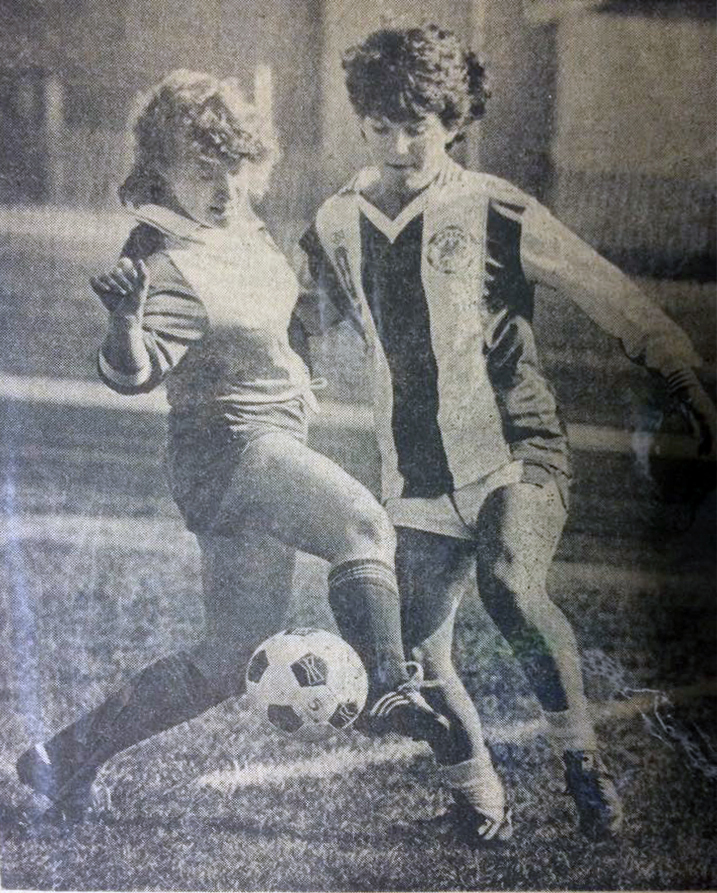 I wasn’t annoyed at being dropped in the JV category. I was not what you’d call a natural athlete. It’s horrible, sometimes, that one’s permanent mental picture of oneself is that 13 year old self: in my case, chunky, uncoordinated, nerdy, acne, always chosen last in sports, shy, and (as my brothers would tease me) all the dexterity of a fern. It was, actually, an honor to be allowed to play on the same team as the popular, talented girls. Our heroes at the time were the stars of the boy’s team – really, they were our only influencers, because the 3 TV channels we got back in the Stone Age had never aired a soccer game. I’d never seen an adult play.