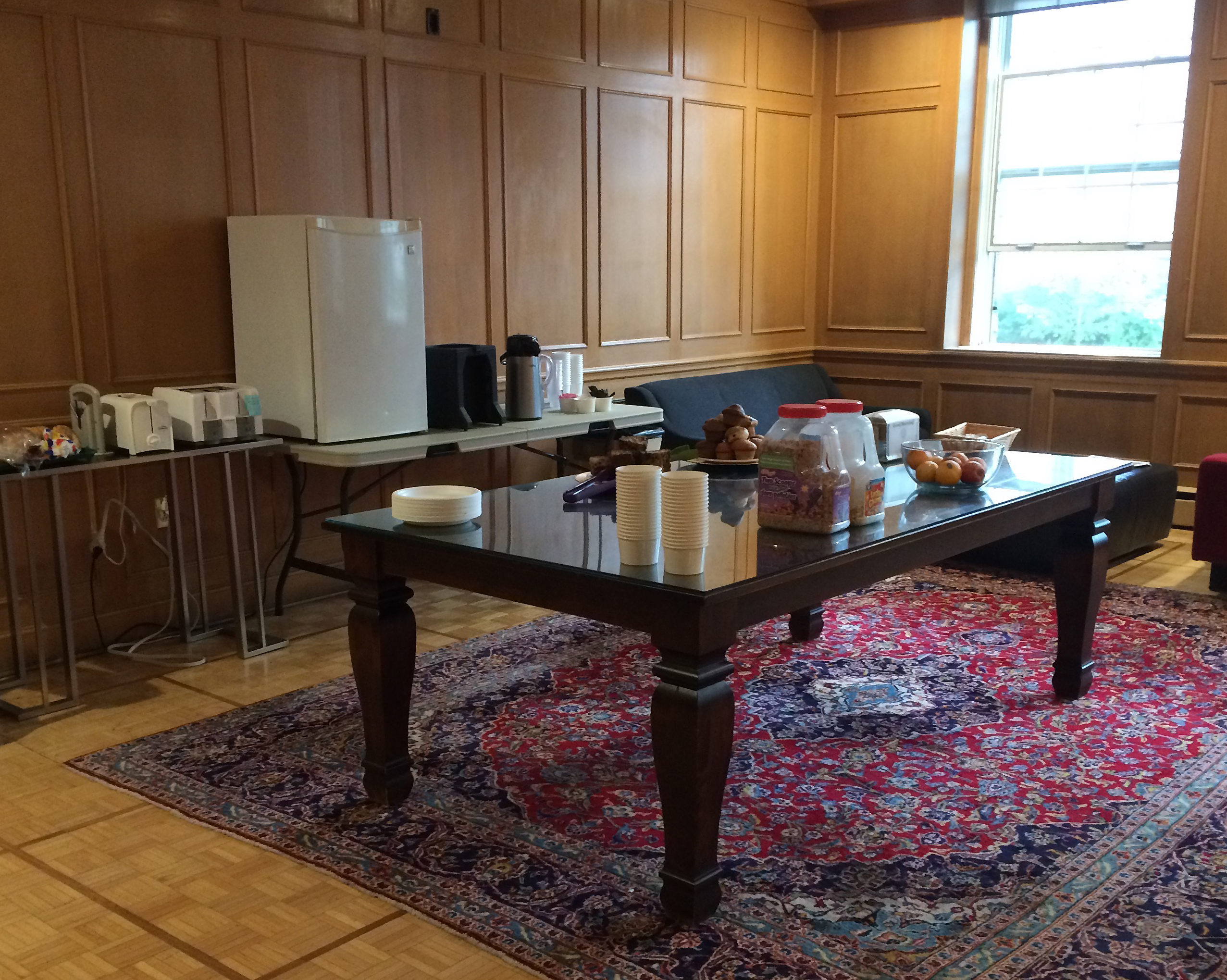 Sunday afternoon the university president welcomed our class for an open house, billed as a “barbeque,” which we ate balancing plates on our knees. My leftover half of a bagel-egg sandwich from that second breakfast would do for supper.
