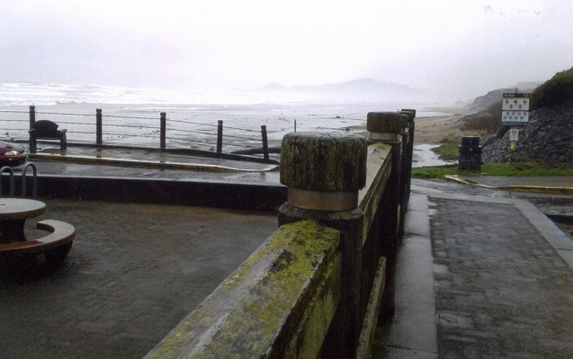 Dad drives leisurely through town, ending up at the Nye Beach turnaround where we park and watch the Pacific Ocean and the surf coming up on the beach. Mom loves this sight, so this is where we come.