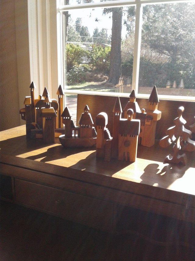 She had my little, wooden castles that sit on the shelf in her hand and was cleaning them with Q Tips!  They picked up every little thing on the counters and wiped each down, including the papers strewn around my desk, pencils, pens. The adding machine was cleaned with Q Tips as well.  They used Q Tips to clean the dollhouse furniture in the dollhouse we have for our granddaughter.