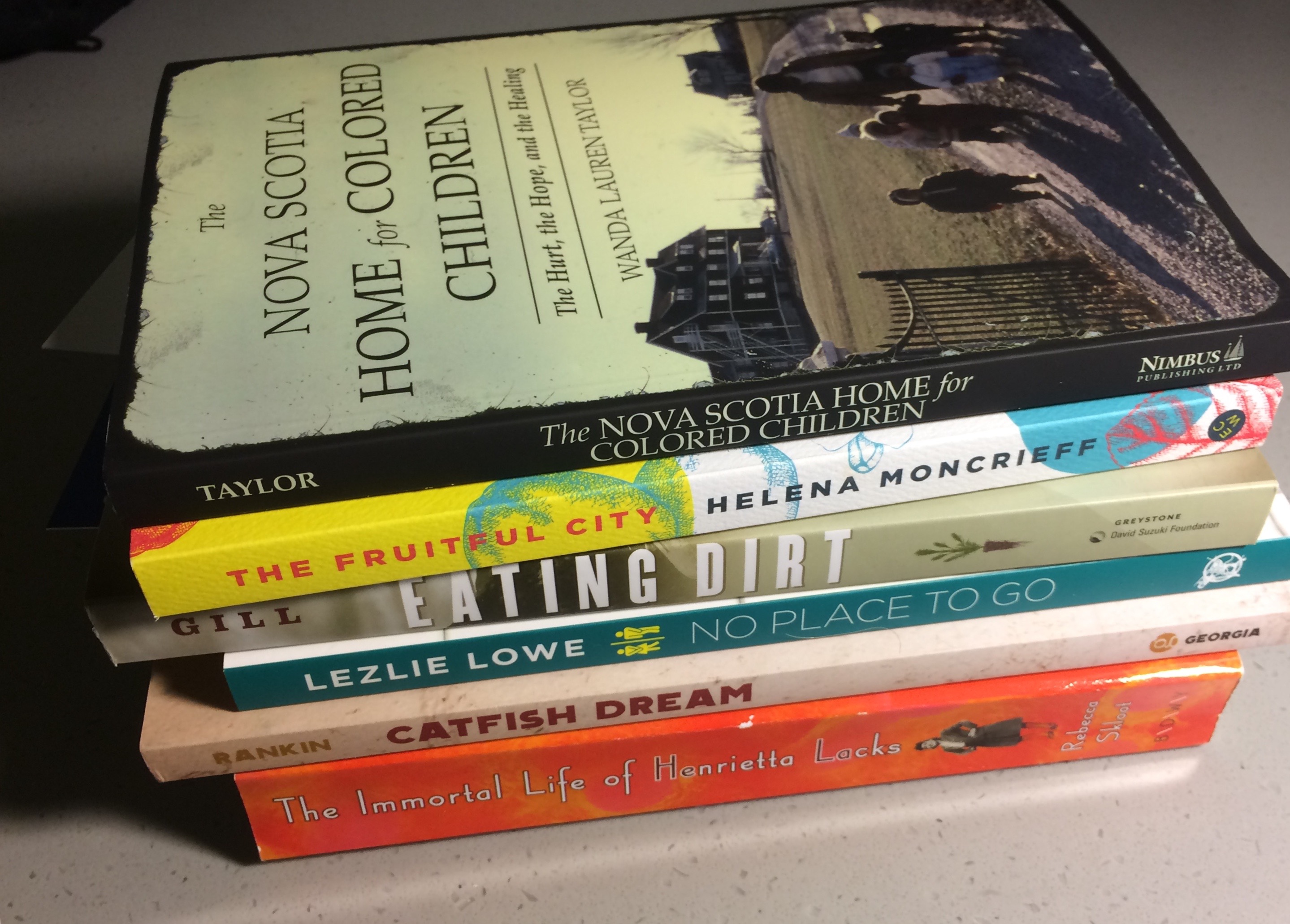 All but the bottom two were written by U-Kings graduates. The Nova Scotia Home for Colored Children is an oral history/personal history. The Fruitful City is about urban gleaners who ask the question: Can neglected city-grown fruit address hunger, waste, and food illiteracy? Eating Dirt takes us on the forest road with the tree-planting tribe of Canada’s west coast, while No Place to Go shows us how far we have to go to achieve potty parity–the author’s phrase–for all.