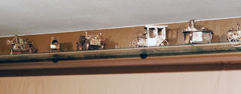 HOW, you ask, did I solve this dilemma? ANSWER, I put the taller ones in different places around my condo. As my daughter and her children were leaving, she nonchalantly looked up at the shelves and said, “they sure would look terrific if a string of lights were put behind them. That would really set them off”!