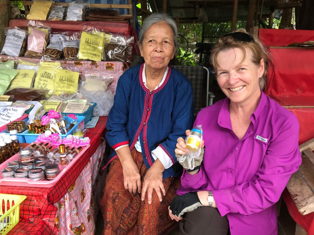 Thailand is a land of smiles, perhaps because its population is 83% Bhuddist. The followers of Buddhism don’t acknowledge a supreme god; instead they focus on achieving enlightenment, a state of inner peace and wisdom. The universal language is eye contact, and a smile. If you say hello in Thai, “swa-ti-kah,” then be prepared to be immediately swept away in a lightning round of 21 questions–probably with someone younger, either currently or recently in school, who is delighted to practice their English and hear about an American’s experience in their country. Being older and perhaps maternal-looking, I discovered a smile made me a conversation magnet, always starting with the “ so what you do in Thailand ?!?”