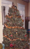 I remember clearly the first Christmas my husband and I were married. The day before Christmas Eve I suddenly, desperately wanted a tree so we hopped into the Volkswagen, drove to a nearby gas station and purchased one of the three remaining Scotch pines, lashed it to the roof and hurried home, totally forgetting it would need a stand and decorations. Back at the apartment, we released the tree from its bonds and were startled to discover it was as round as a beach ball and quite unwieldy. Our innovative solution to the stand problem involved filling a tin can with water, placing it in a cement block borrowed from our block and board bookcase, and inserting the tree therein. A quick trip to Treasure Island for a few clearance ornaments and a string of lights transformed it into a thing of beauty. I believe I may have even strung popcorn for a garland that year. First tree, best tree?