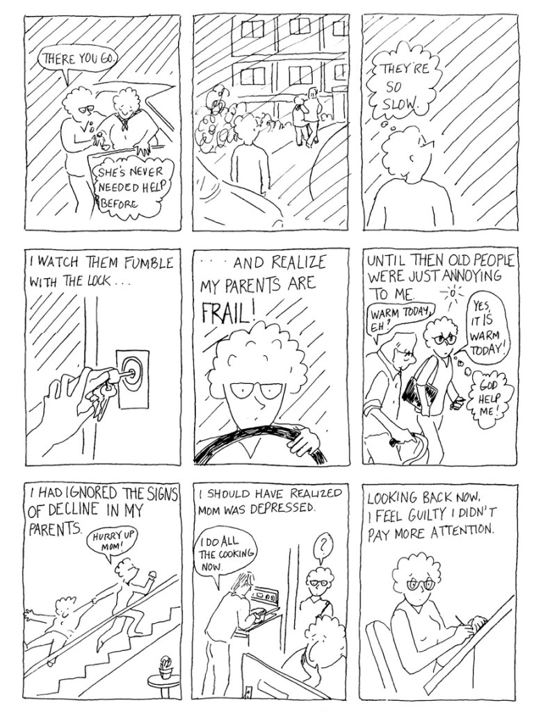 I think essentially, I ignored that question. The thing I struggled with or worried about was the audience. I wasn’t sure if graphic memoir was a genre that would be read by middle-aged women. Roz Chast was my inspiration to keep going.