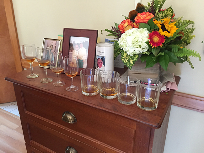 “An arrangement of photos of Mom and Dad, and Mom as a young ballerina. In front are glasses filled with whisky we used to toast Mom after she passed.”