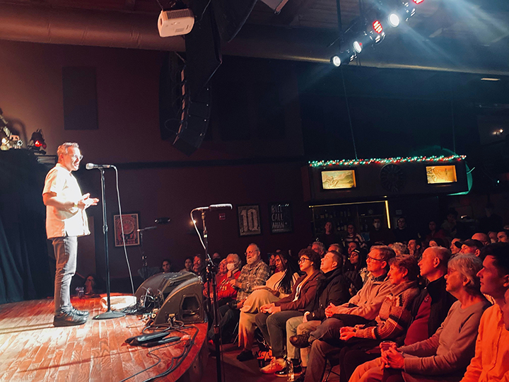 The Moth is a storytelling event-based non-profit founded in 1997 in New York City by friends who missed the feeling of sultry summer evenings in the South, where friends would gather to spin tales while moths swarmed the light on the porch. Local groups across the US host Moth Storyslams, theme-based events where ordinary people are welcome to put their name in the bag and, if chosen, tell a 5-minute true story on that evening’s theme. Storytellers are scored based on the content of their stories, their storytelling abilities, and their resonance with the evening’s them. Joshua participated for the first time at the Madison Moth in December 2022. The theme that night was Anniversaries; here is his story.